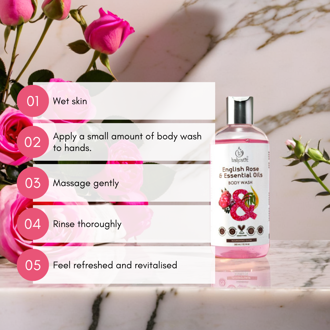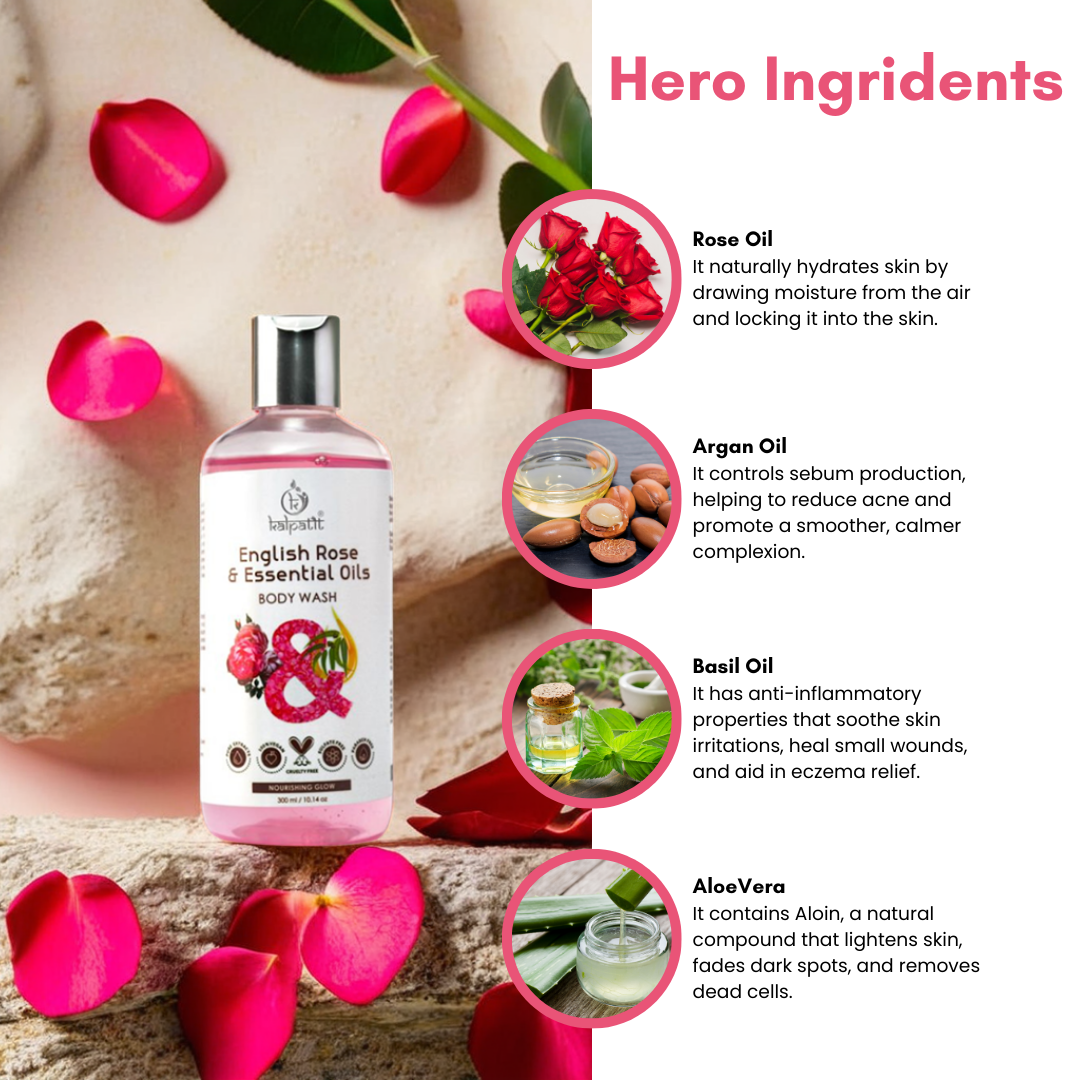 Bring yourself the pleasure of aromatic mornings with Kalpatit English Rose Body Wash. English Rose is rich in Vitamin C that will help nourish deep layers of skin and fade pigmentation marks. Argan Oil present in the product is popular for moisturising and hydrating your skin with high levels of Vitamin E and fatty acids present in them. So say goodbye to rough texture and uneven skin tone and enjoy the luxury of deep cleansing every morning with Rose Nourishing Glow body wash.